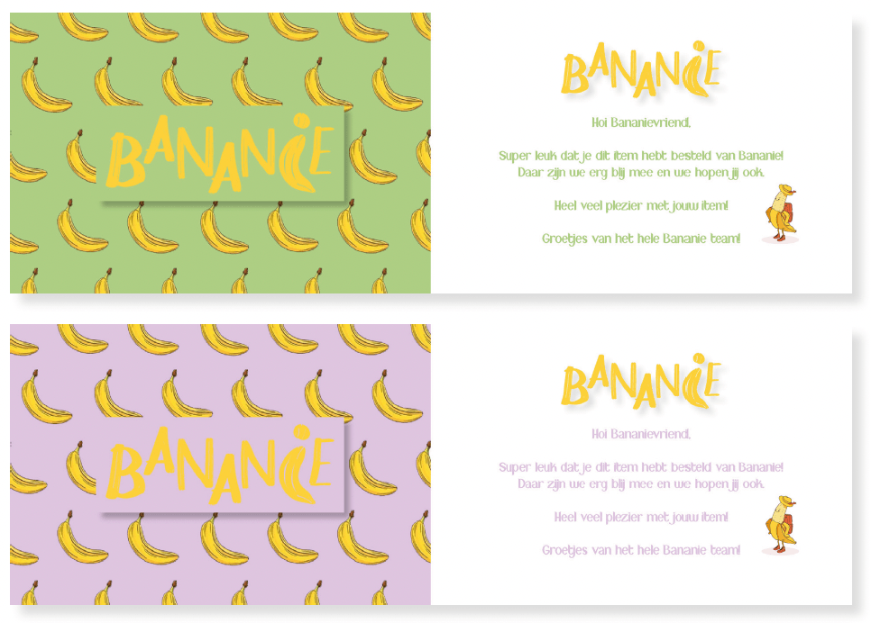 Bananie | 2019 2021Various marketing | graphic design assignments like postcards and ‘give away’ cards